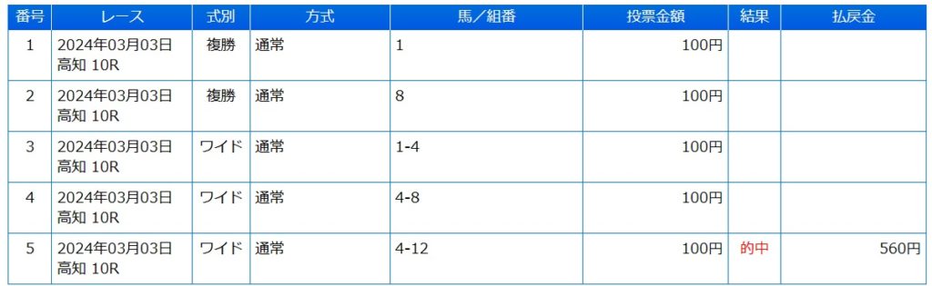 複勝だけ買って両隣で決まったったことが何度かあったので。